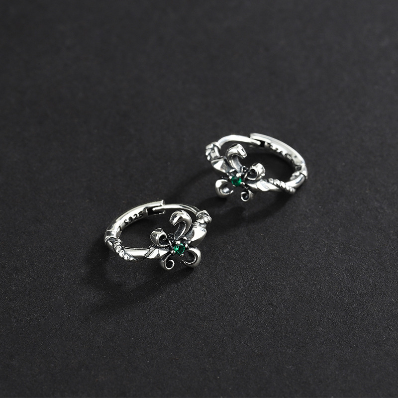 925 Sterling Silver Vintage Personality Iris Emerald Zircon Earrings